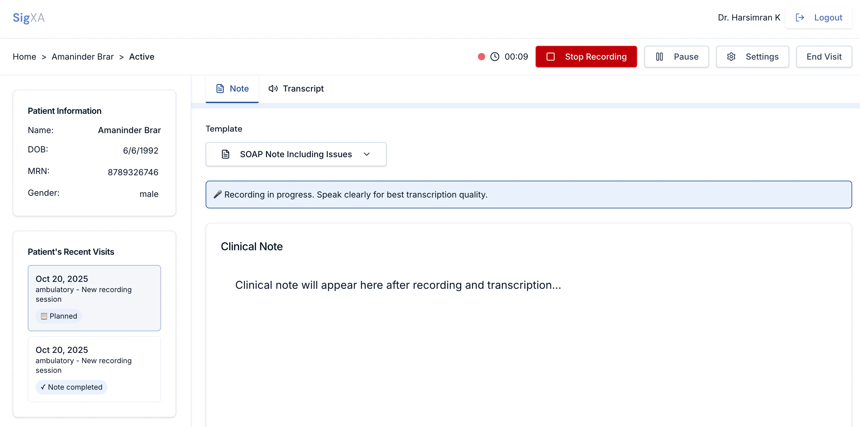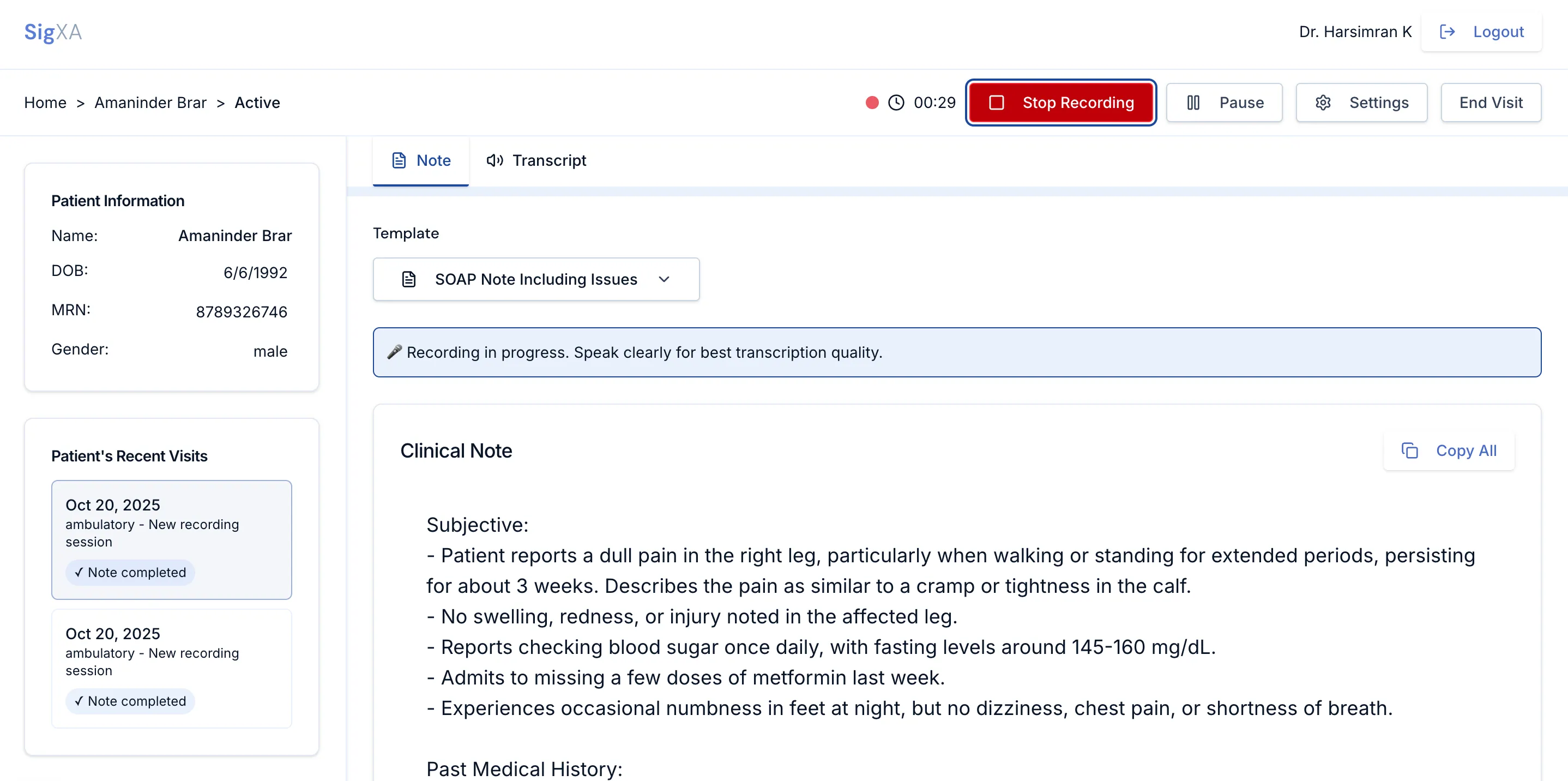 Experience the perfect balance of accuracy and efficiency in medical documentation. From solo practices to health systems, SigXA empowers healthcare providers to transform patient encounters into comprehensive clinical notes while maintaining seamless integration with existing EHR workflows. Transform the way you document, review, and manage patient care.