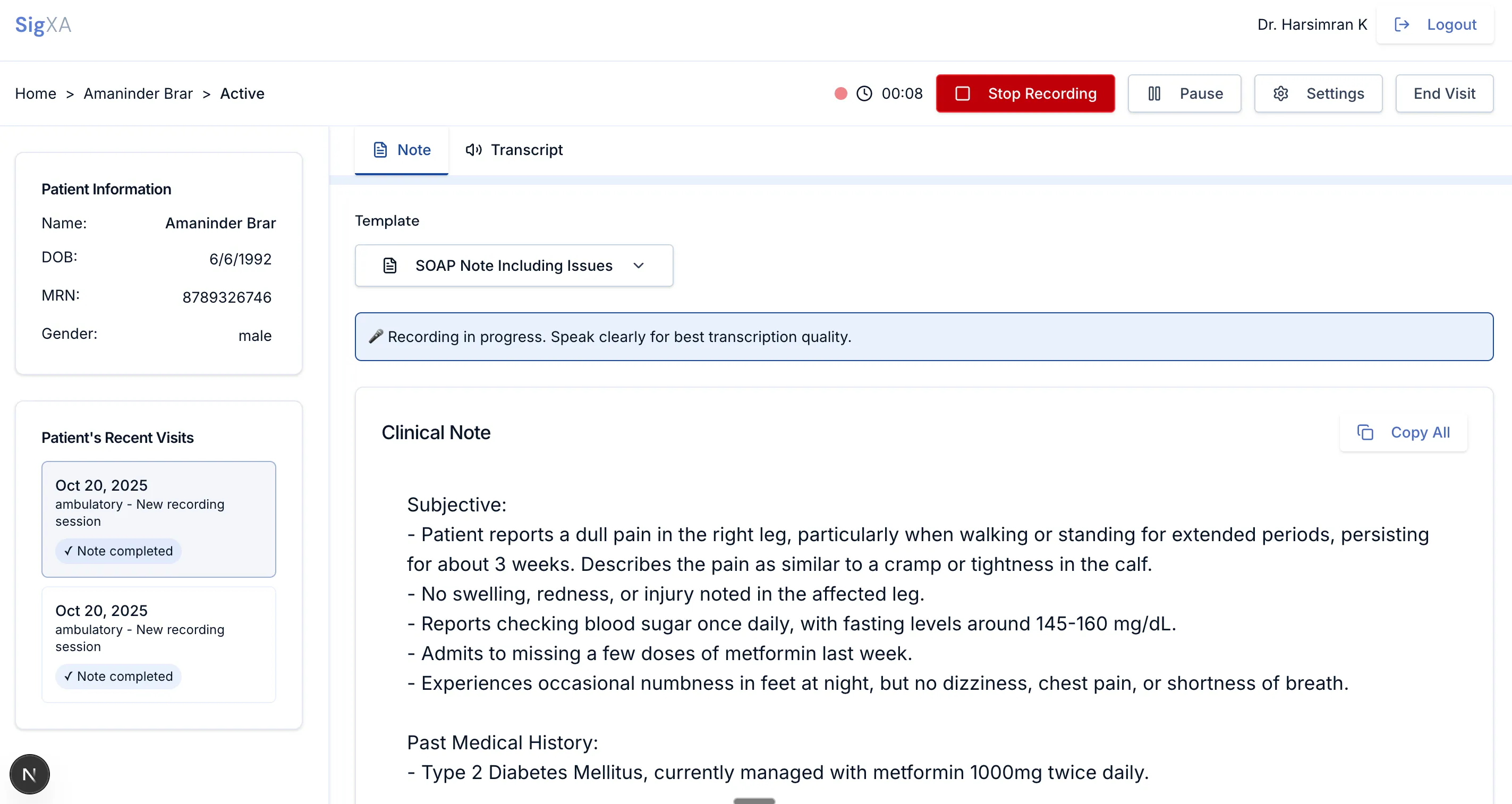 - Chief Complaint Section: Automatically captures primary and secondary concerns